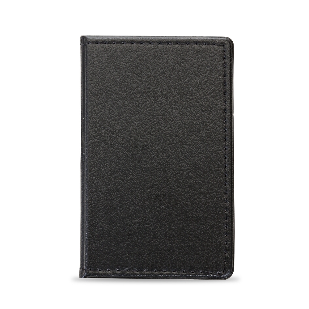Bloco de anotações em couro sintético com autoadesivos, frente e verso liso. Possui cinco blocos coloridos autoadesivos com aproximadamente 25 folhas e bloco amarelo com aproximadamente 30 folhas.