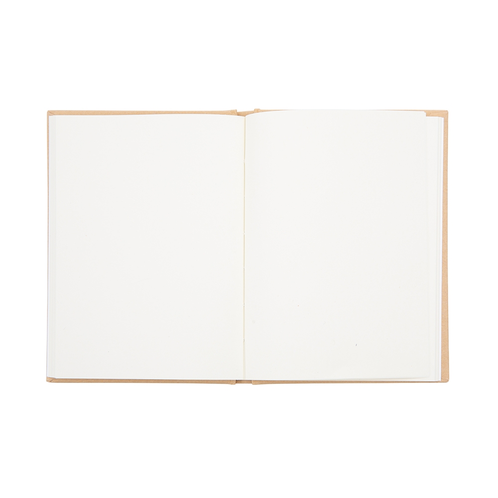 Bloco de Anotações Ecológico, material em kraft. Frente e verso liso com fita elástica para fechar. Contém aproximadamente 80 folhas amareladas sem pauta.
