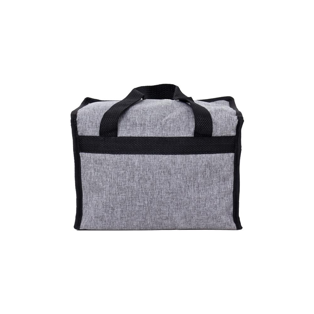 Bolsa térmica 13 litros confeccionada em poliéster, contém revestimento interno em polietileno atóxico soldado (não vaza) e alça para mãos.