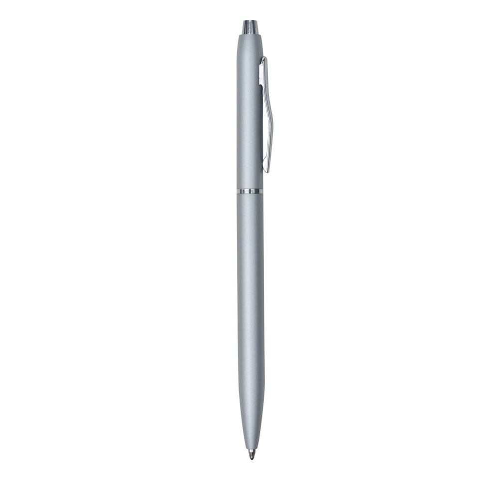 Caneta metálica com carga esferográfica azul e acionamento por clique. OBS.: PEDIDO APENAS MÚLTIPLO DE 100 PEÇAS!
