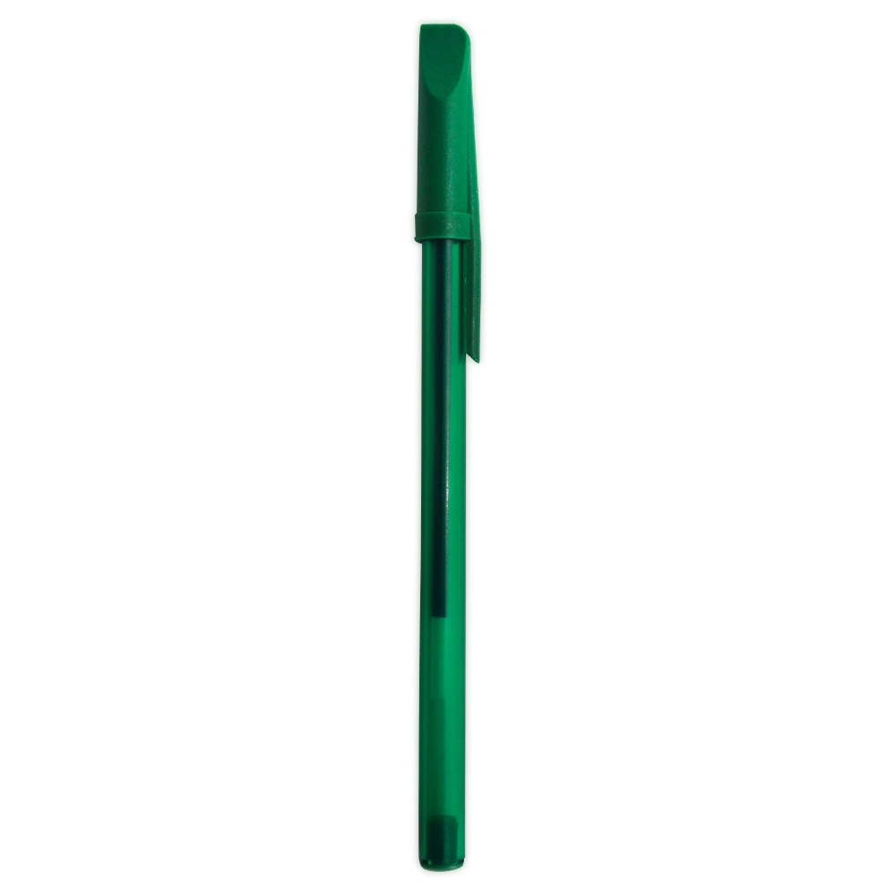 Caneta plástica com tampa. Carga esferográfica azul.
