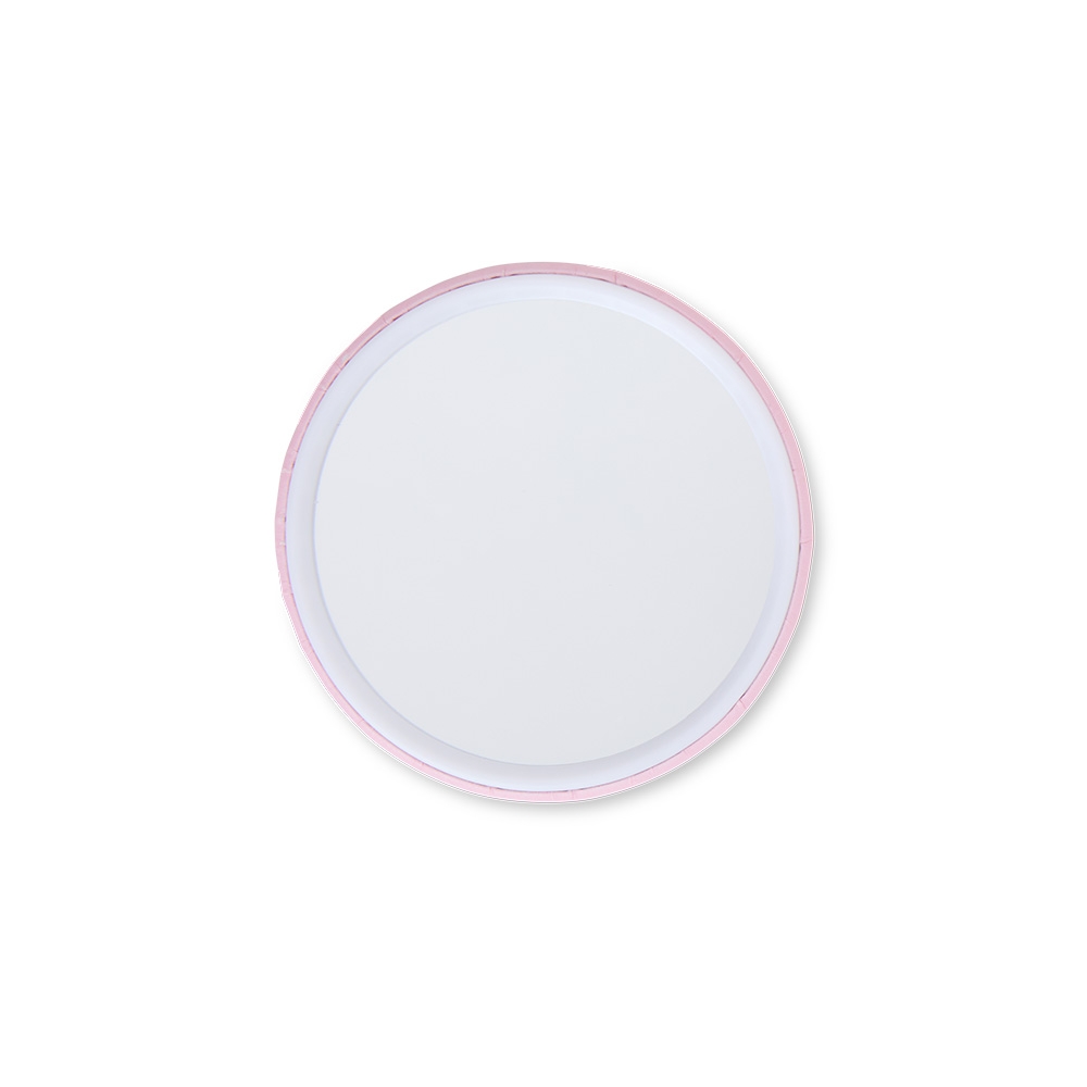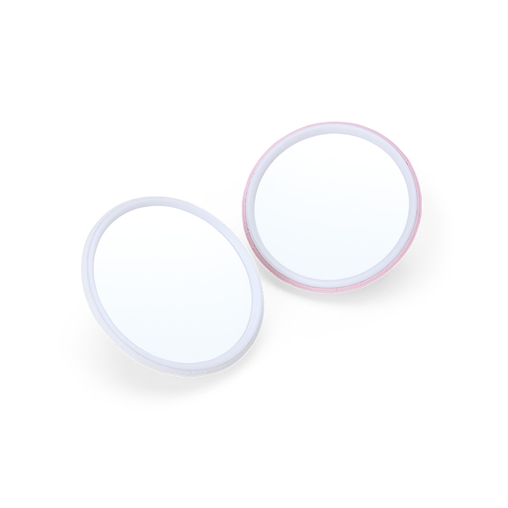 Espelho plástico sem aumento com verso de acabamento brilhante e película de ferro.