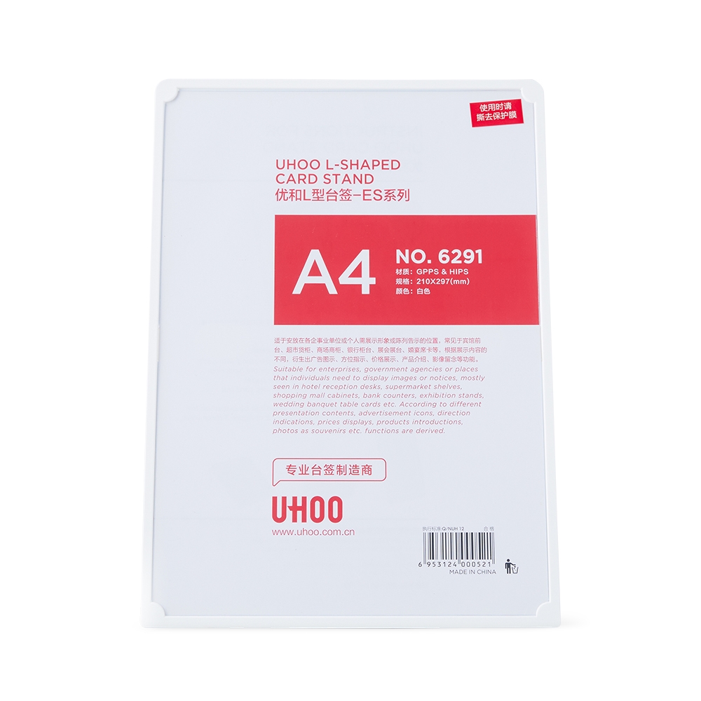Expositor porta retrato A4 feito em poliestireno com placa acrílica.