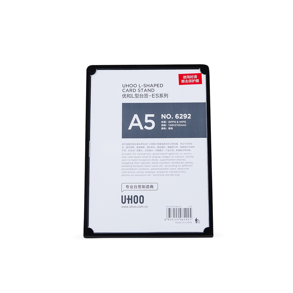 Expositor porta retrato A5 feito em poliestireno com placa acrílica.