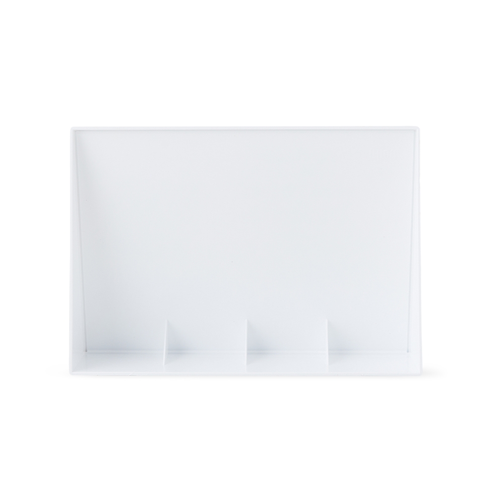 Expositor porta retrato A5 feito em poliestireno com placa acrílica.