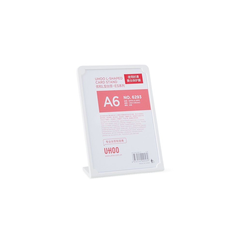 Expositor porta retrato A6 feito em poliestireno com placa acrílica.