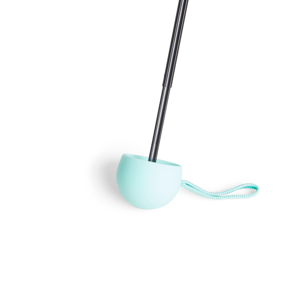 Guarda-chuva manual cápsula em poliéster de impacto impermeável e tecido interno em vinil. Com 6 varetas e estrutura em aço, possui pegador, botão de abertura e alça de Nylon. Acompanha estojo protetor com alça.