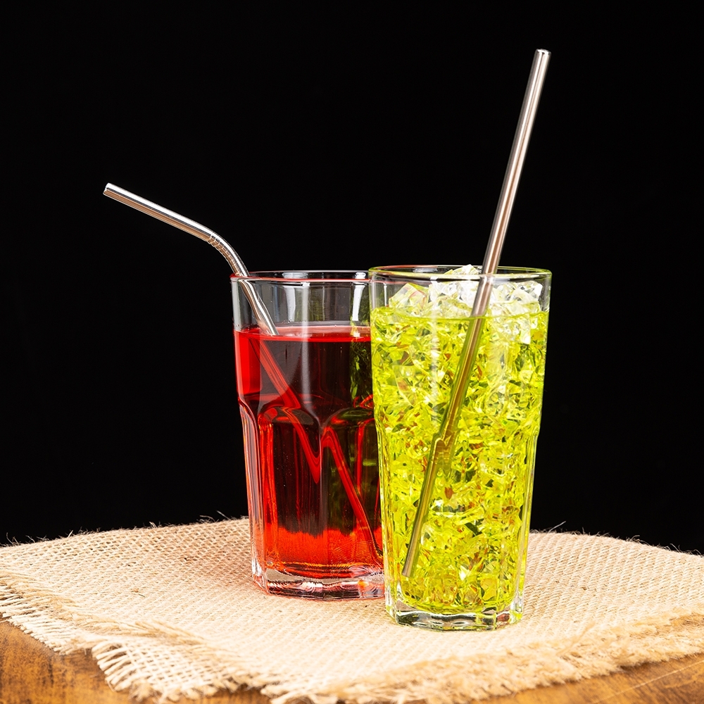Kit com dois canudos de aço e escova em estojo plástico. Contém canudo reto e canudo curvado com detalhe superior de dez anéis, escova de limpeza com corpo de aço e ponteira plástica. Acompanha estojo ziplock.