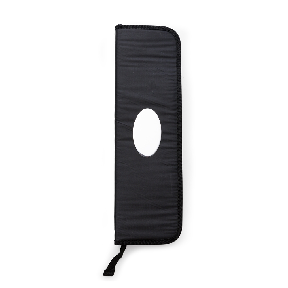 Kit churrasco 4 peças em estojo de nylon com alça. Possui: pegador, garfo, espátula e faca em inox, acompanha proteções plásticas e parte interna com velcro para guardar as peças.