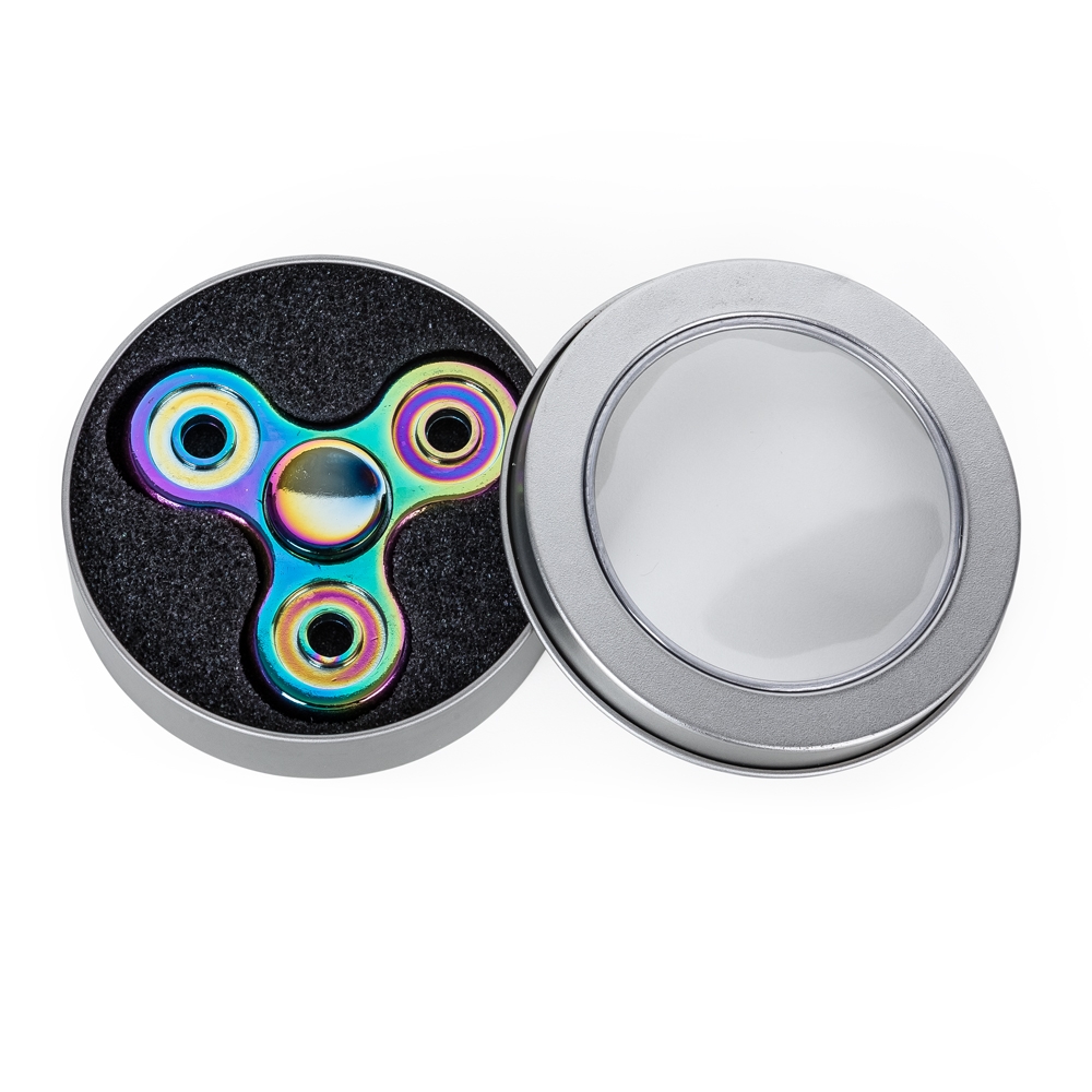 Spinner antiestresse camaleão, material metálico. Acompanha estojo metal com visor na tampa, parte interna revestida de espuma.