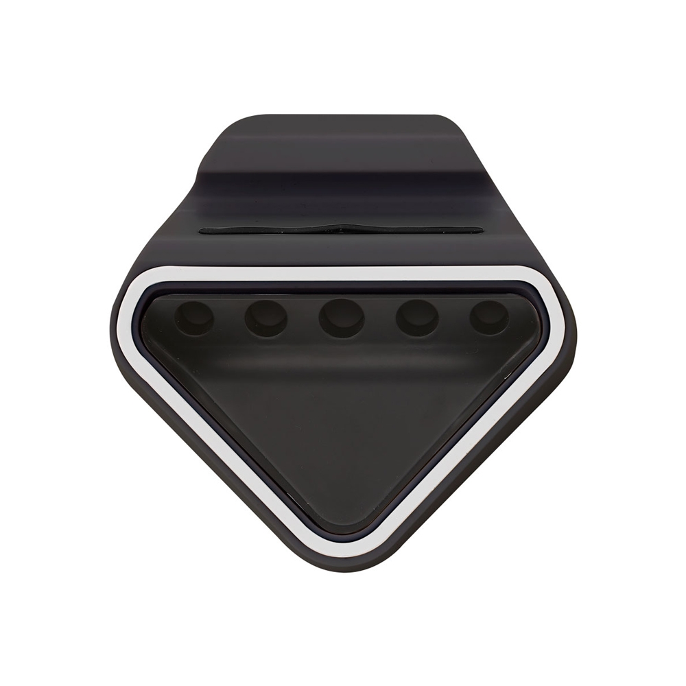 Suporte para celular com porta canetas e clips (não acompanha), produzido em plástico ABS com detalhes termoplásticos, parte inferior com borrachas antideslizantes.