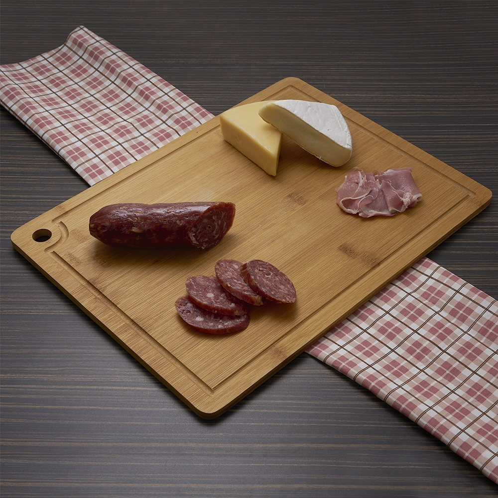 Tábua de corte com canaleta e acesso para gancho.