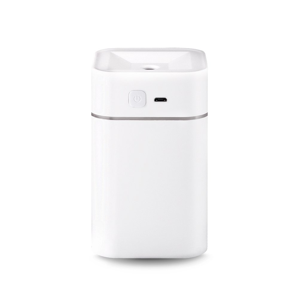 Umidificador de ar com reservatório de água com capacidade para 230ml. dois níveis de névoa, continua e com oscilação. Acompanha filtro de algodão e cabo USB.