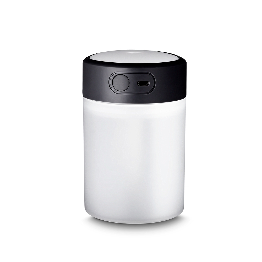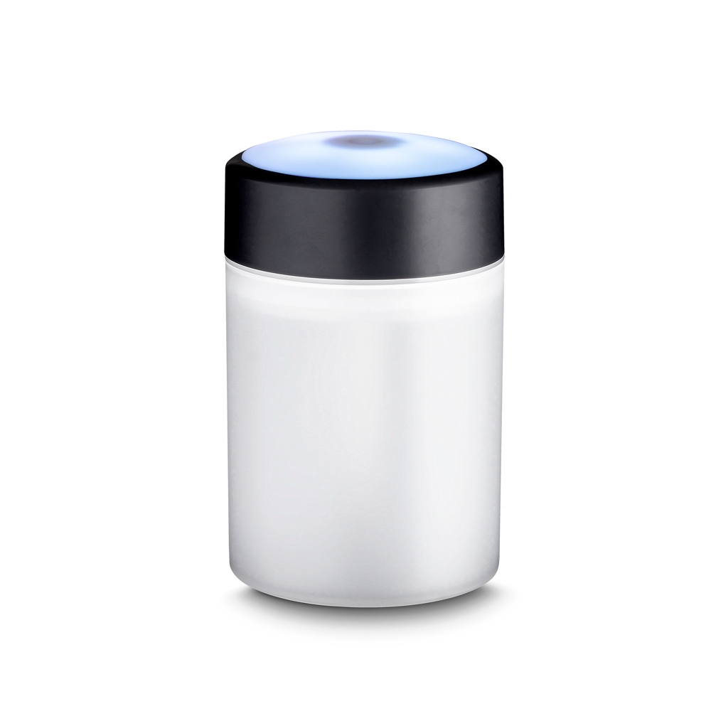 Umidificador de ar com LED colorido, possui reservatório de água com capacidade de 325ml, dois níveis de névoa, continua e com oscilação. Acompanha filtro de algodão e cabo USB.